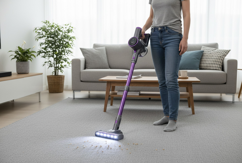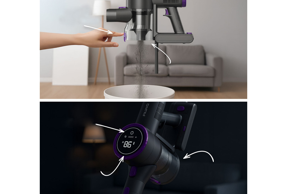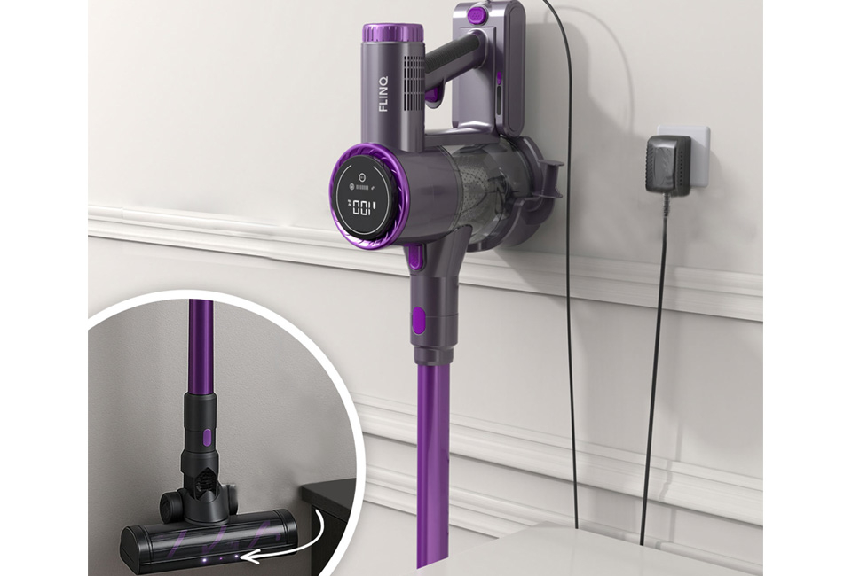 Grâce au boîtier léger et à la tête de brosse rotative à 150° et inclinable à 90° avec éclairage LED, vous atteindrez sans effort les coins sombres et passerez sous les meubles. Le filtre HEPA garde l'air propre et le bac à poussière se vide d'un simple clic. Hygiénique et rapide.